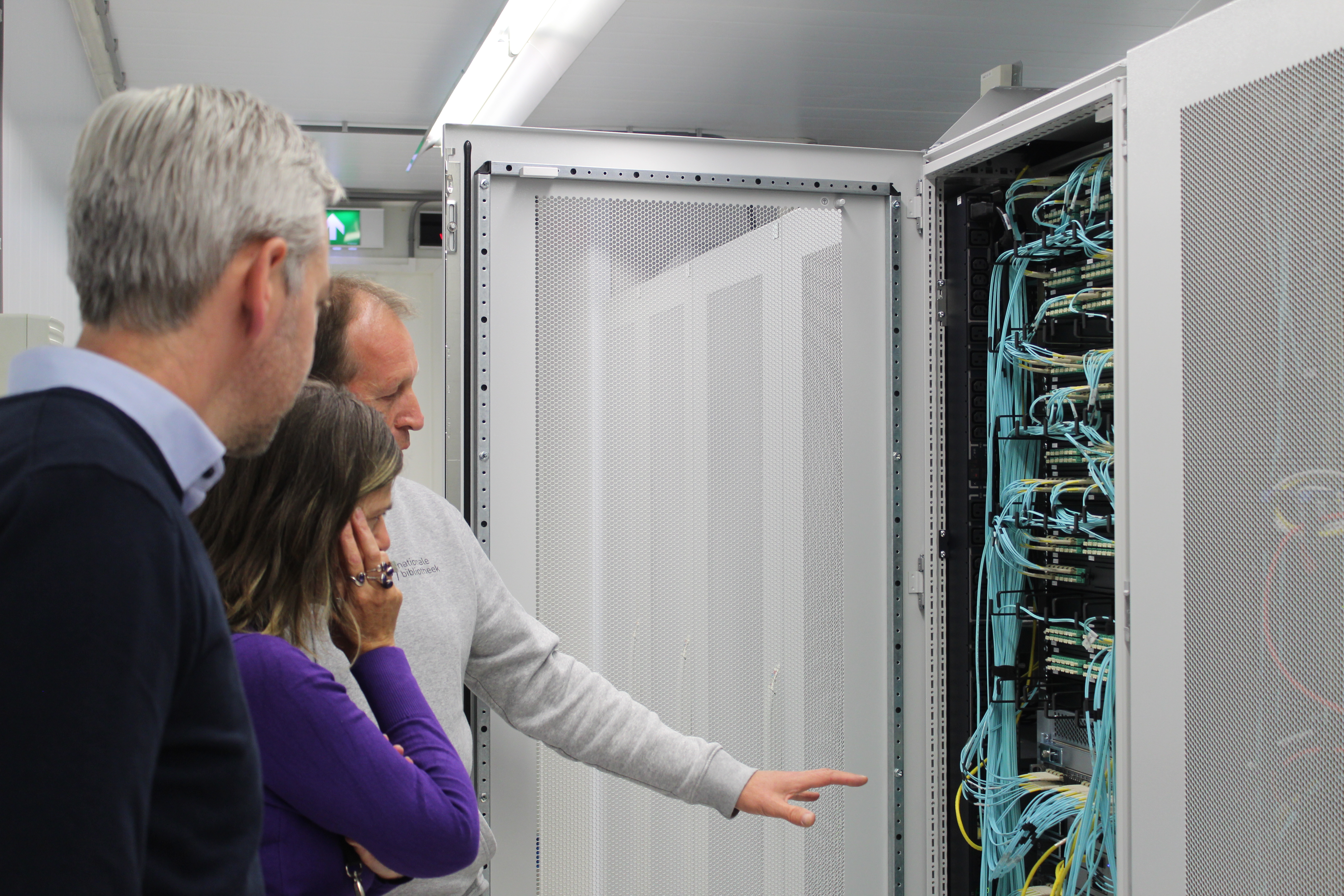 We store those 2 billion files in our digital repository, the e-Depot. The KB has a data centre available for this purpose and strict security measures apply there. You are not allowed to just walk in and there are various other requirements in place, such as maintaining the proper oxygen levels. Jeffrey and IT specialist Peter Boel show me around the area. It’s rather amazing. You feel like you have literally stepped into a digital memory, into a white, sterile room full of buzzing server cabinets. The KB is currently building a new digital repository and the many files with descriptions are being transferred to new systems.