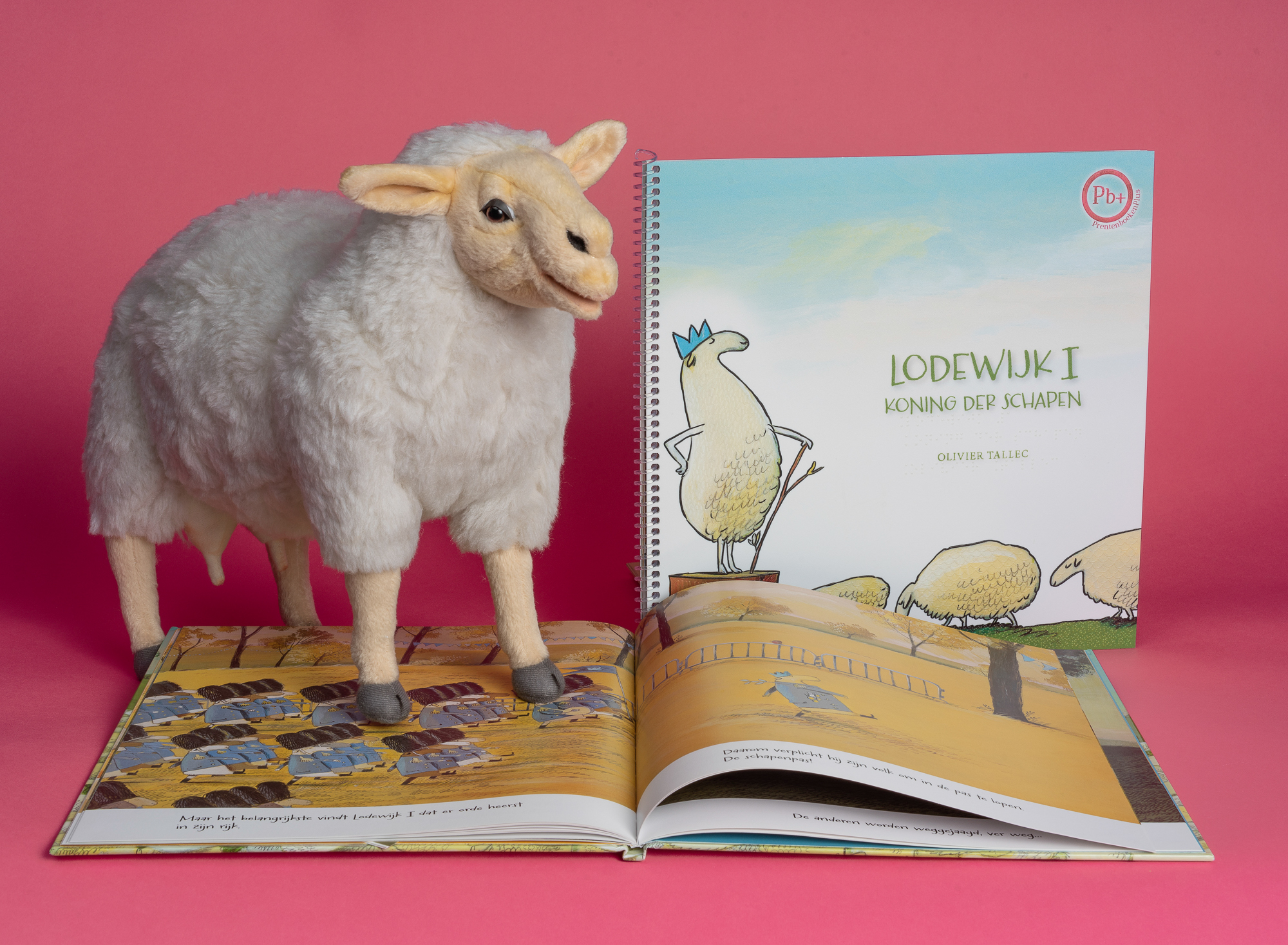 Stories that you can feel: that’s the basis of the series published by the PrentenboekenPlus foundation. This foundation makes versions of well-known picture books that feature tactile pictures for children to feel. The stories also have Braille subtitles. The books enable children between 4 and 8 years old with impaired sight or hearing to enjoy ‘reading’ picture books. The KB has all 18 titles from this series in its collection. One of them is Lodewijk I koning der schapen. Not only is the story in this book tactile, but the set also includes a woolly toy sheep.