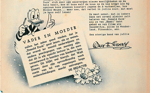Om te benadrukken dat de Donald Duck echt geen kwaad kon, schreef de redactie in een voorwoord van het eerste nummer: "Vader en moeder zullen het zeker goed vinden, dat je Donald Duck gaat lezen, als ze weten, dat overal ter wereld onderwijzers en andere pedagogen van mening zijn, dat dit in elk opzicht lectuur is, die men verantwoord in handen van kinderen kan geven. Dit blijkt wel hieruit, dat Walt Disney door zijn opvoedkundig werk reeds van tal van regeringen hoge onderscheidingen mocht ontvangen." De Donald Duck bleef tot nummer 28 van 1961 verbonden aan de Margriet.