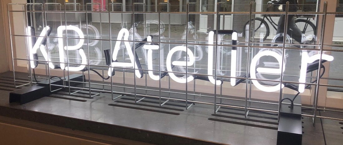 De creatieve makers werken hun ideeën uit in het KB Atelier. Hoe ziet dat er in de praktijk uit? Het KB Atelier bevindt zich in het pand van de KB in Den Haag en bestaat uit 2 verdiepingen. De ruimte op de begane grond is door de grote ramen zichtbaar voor iedereen die langsloopt. De ruimte is licht en open, en is vrij toegankelijk. Het meubilair van het KB Atelier is flexibel, waardoor iedereen de ruimte naar eigen inzicht kan inrichten.