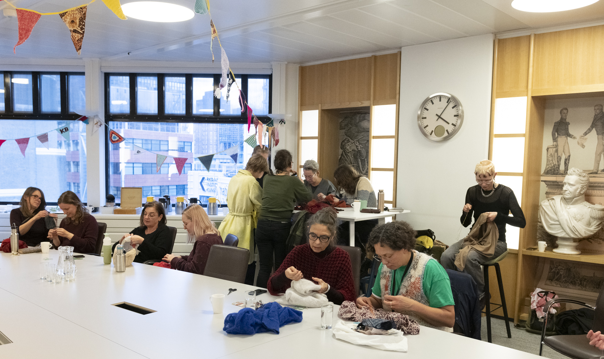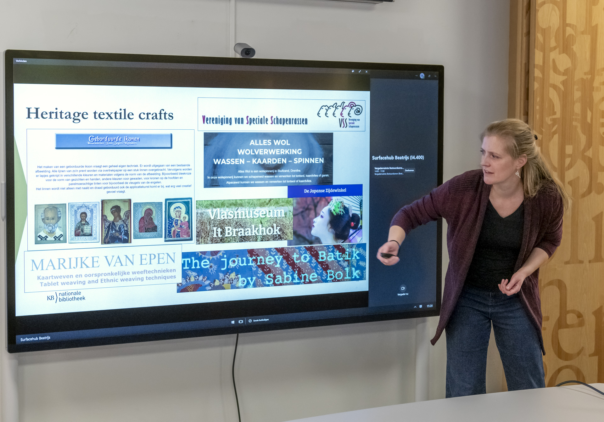 Op dinsdag 19 november werd in de KB de speciale webcollectie Handwerken gelanceerd. Na een korte presentatie over het belang van webarchivering mochten de deelnemers zelf aan de slag. Onder leiding van de Feministische Handwerkpartij (FHP) namen zij in de bestuurskamer van de KB deel aan de workshop Visible Mending en de performance van textielkunstenaars Emmeline de Mooij en Carmen Draxler.