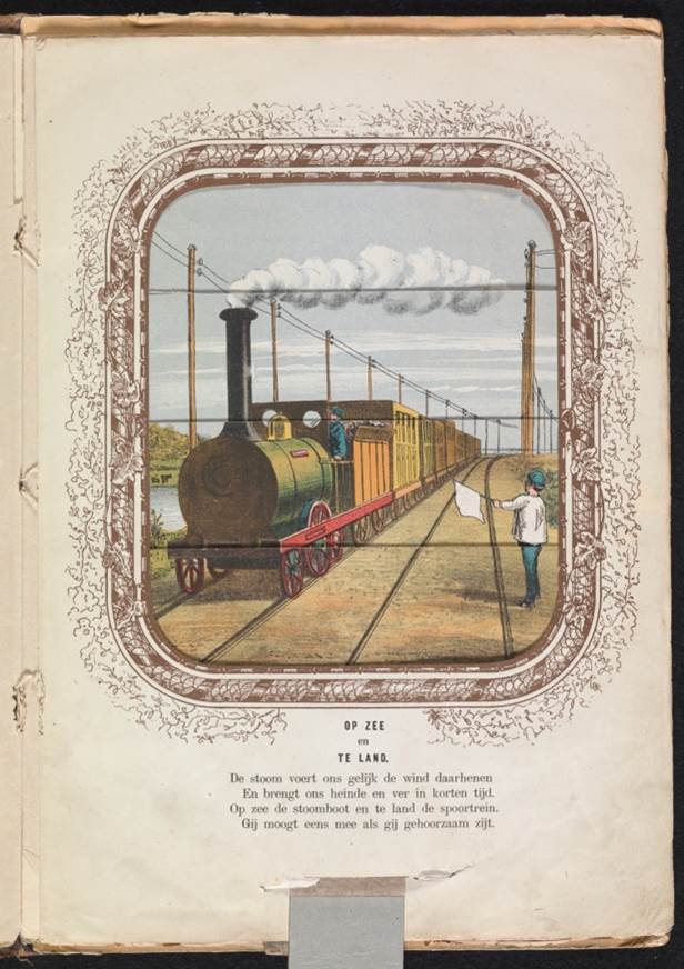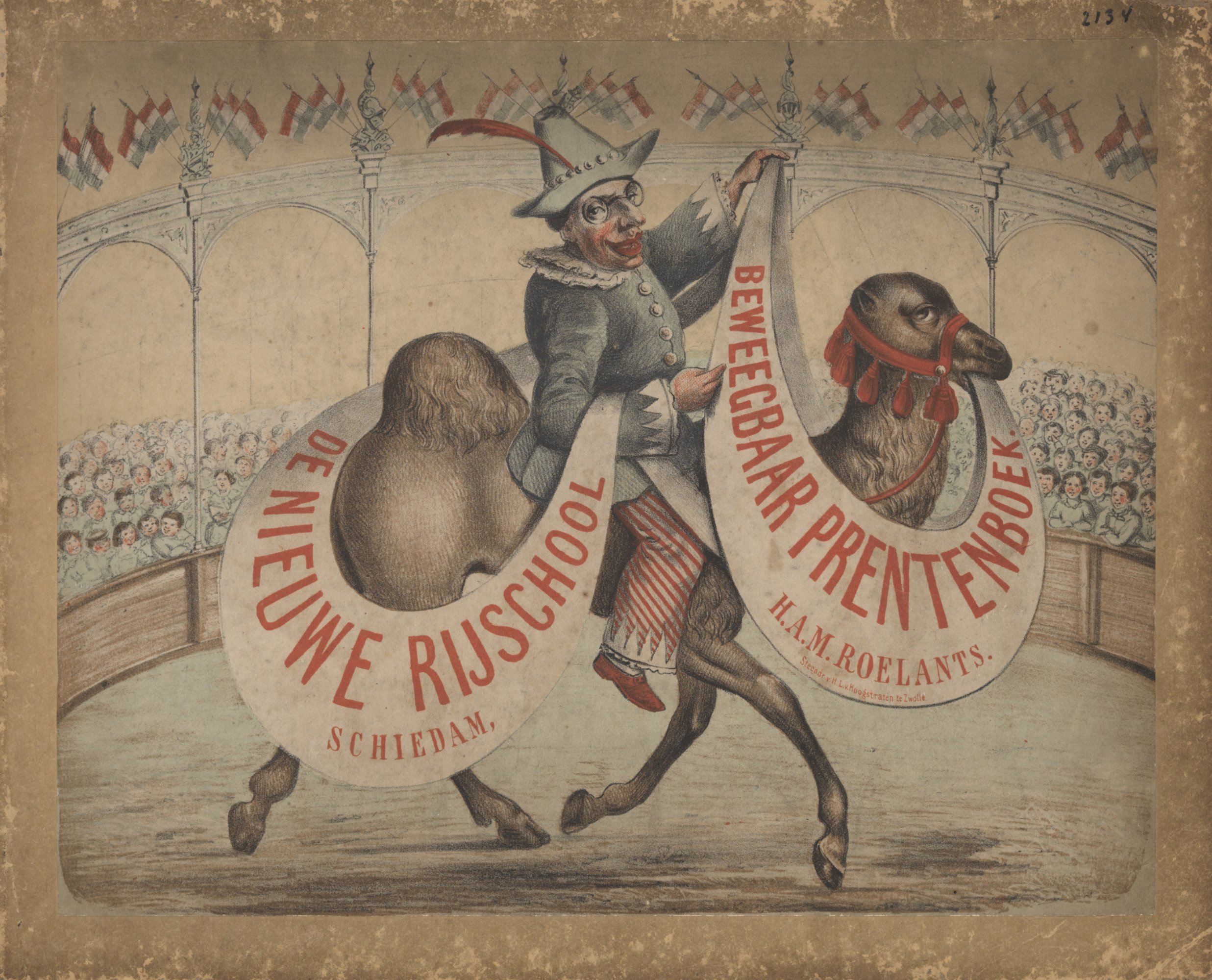 In de jaren 70 en 80 van de 19e eeuw waren beweegbare kinderboeken op hun hoogtepunt. Telkens wat anders is een zogenaamd 'jaloezieboek'. Elke illustratie bestaat eigenlijk uit 2 verschillende afbeeldingen. Deze zijn in stroken gesneden en in elkaar geschoven zodat de ene afbeelding de andere afdekt. Als je aan een kartonnen strip onderaan de pagina trekt schuift de ene afbeelding over de andere.