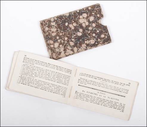Aan het begin van de 19e eeuw verschenen de eerste 'insteekboeken' op de markt. Bij deze boeken zitten losse figuurtjes die in een gleufje in de prenten van het boek passen. Een vroeg voorbeeld van een Nederlandse uitgave is het Fabel-spel voor de jeugd. Het leesboek bevat 20 fabels en een losse prent van een landschap met gleufjes. Daarin passen 20 zorgvuldig gemaakte figuurtjes. Achterin het boekje zit een uitvouwbaar blad waarop alle fabels in het klein zijn afgedrukt. Het kind kan zo zien hoe de figuurtjes bij elk fabel geplaatst moeten worden. De KB heeft 2 exemplaren van dit boek, maar beiden zijn incompleet. Bij het ene boek ontbreekt het landschap, bij het andere ontbreken de figuurtjes.
