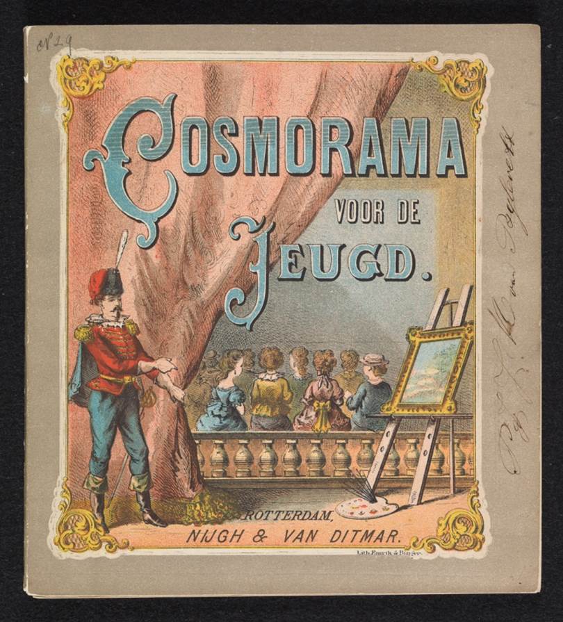 Het exemplaar in de KB is helaas niet in goede staat. Het voordeel is wel dat je daardoor kunt zien hoe de techniek er aan de achterkant uitziet. Dit prentenboek is gemaakt naar voorbeeld van Dean and Son's New book of dissolving pictures.