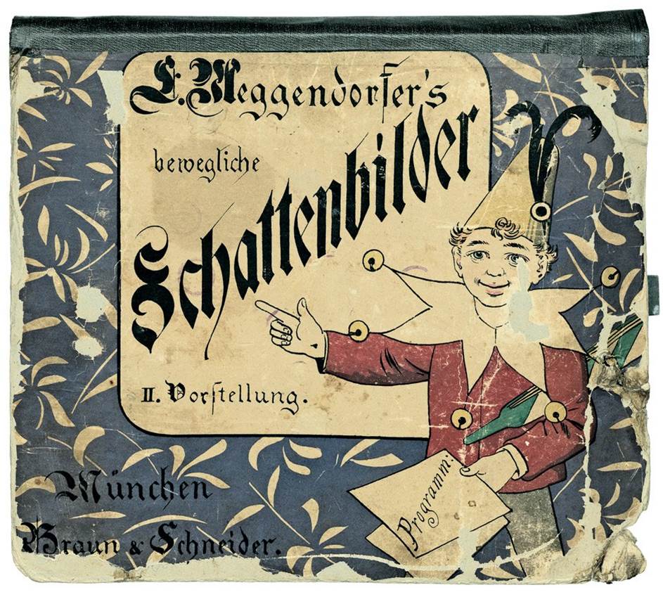 Lothar Meggendorfer was een Duitse illustrator die beroemd is om zijn vele bijzondere boekvormen. Hij heeft zo'n 100 boeken gemaakt die vol slimme technieken zitten. Zijn 'schimmenspelboeken' zijn er een voorbeeld van: door aan een lipje te trekken kun je een onderdeel laten bewegen. Soms kun je door 1 lipje te bewegen verschillende onderdelen tegelijk in beweging zetten. Voorin de boeken liet Meggendorfer vaak een versje drukken, waarin de lezer tot voorzichtigheid werd gemaand. De boeken zijn door hun kwetsbaarheid redelijk zeldzaam. Ze zijn echter zo populair dat er ook facsimile's van gemaakt zijn.