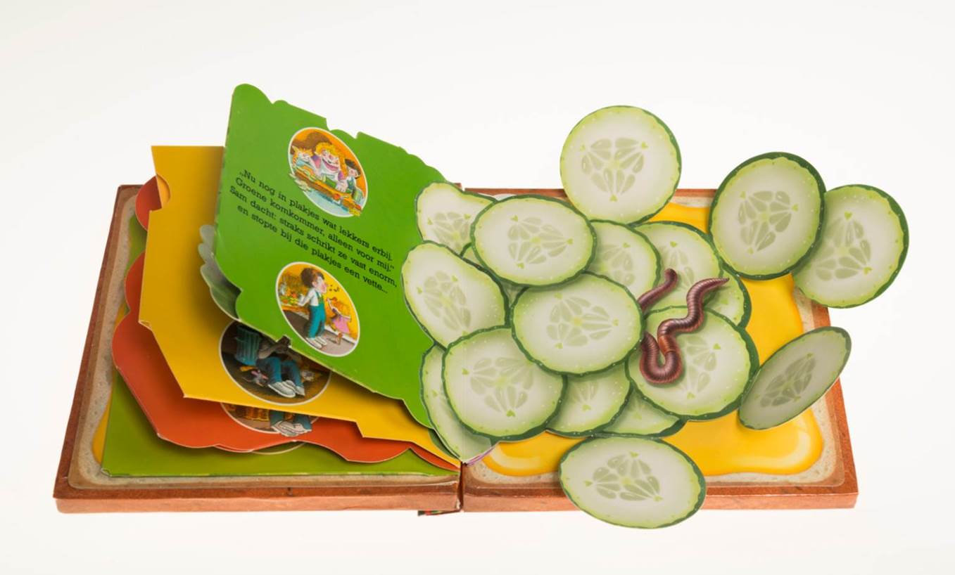 'Objectbanden' zijn boeken die eruit zien als een object dat past bij het verhaal. Sam's sandwich is vormgegeven als een sandwich. Als je de pagina's openvouwt steken de ingrediënten over de rand uit. De voor- en achterkant van het boek zijn een centimeter dik en bedrukt als een boterham. Na het lezen heb je dus een 'echte' sandwich vast. De Engelse maker van dit boek, David Pelham, heeft meerdere van dit soort uitgaven gemaakt. Hij verstopt vaak vieze dingen tussen in de eetwaren. Zo zit er een dode goudvis in een bonbon en zie je hier een worm tussen de komkommerschijfjes.